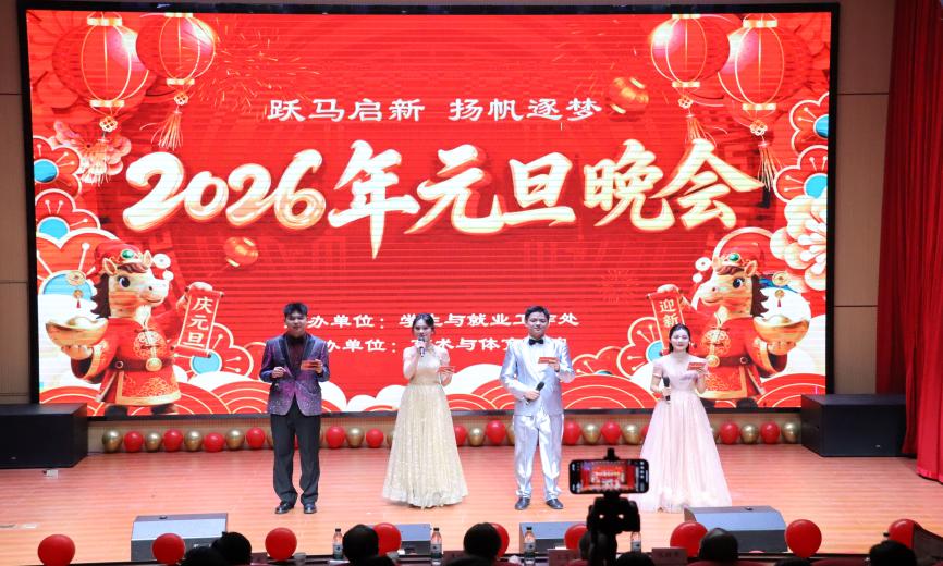 乘风好去,长空万里,直下看山河。12月30日晚, 2026年“跃马启新·扬帆逐梦”元旦晚会在衡阳师范学院南岳学院新校区知行楼一楼报告厅举行,衡阳师范学院南岳学院党总支书记谭晓兰、衡阳师范学院南岳学院副院长宋毅军、邓育武、衡阳师范学院南岳学院新校区校领导王芳宇、何敦培以及各行政处室、各二级学院负责人及全校200名师生一同赴会,2000余名同学积极观看线上直播,气氛热烈非凡。