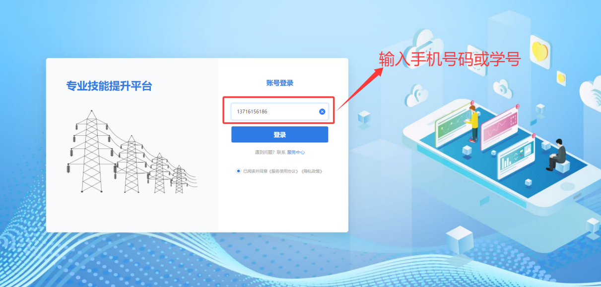 输入手机号,并详细阅读《服务使用协议》和《隐私政策》后,点选“已阅读并同意”。