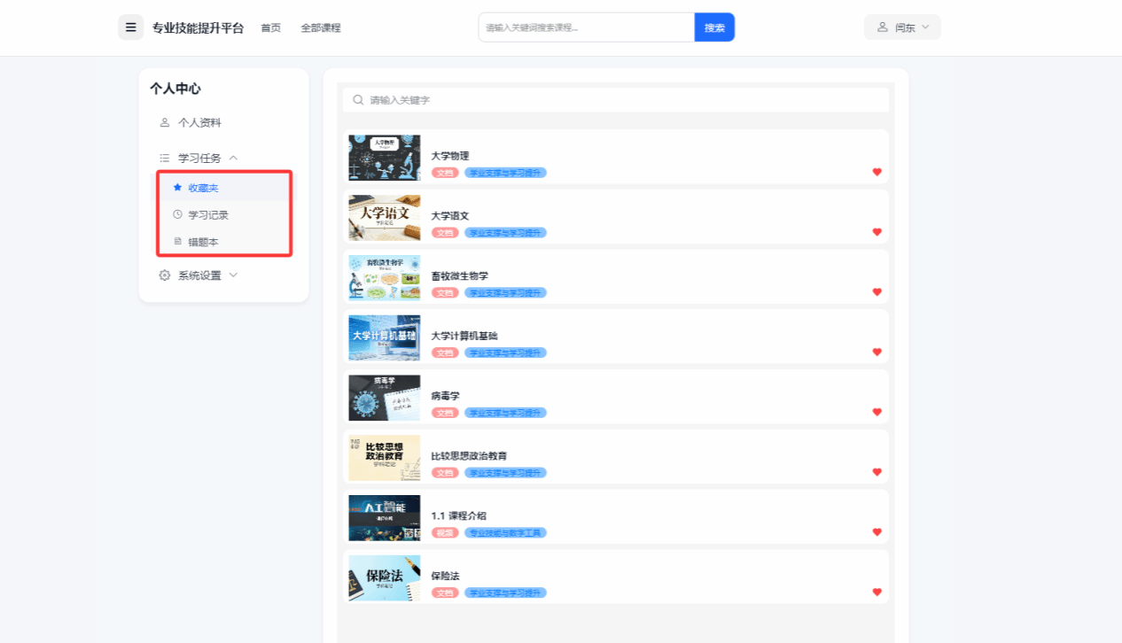 系统导航采用层级分类导航方式,可以根据需求快速定位学习目标。